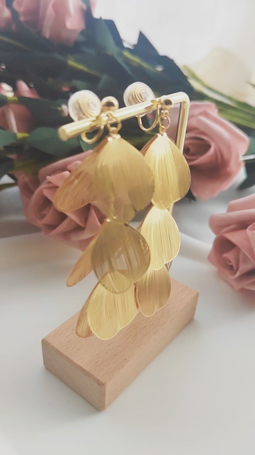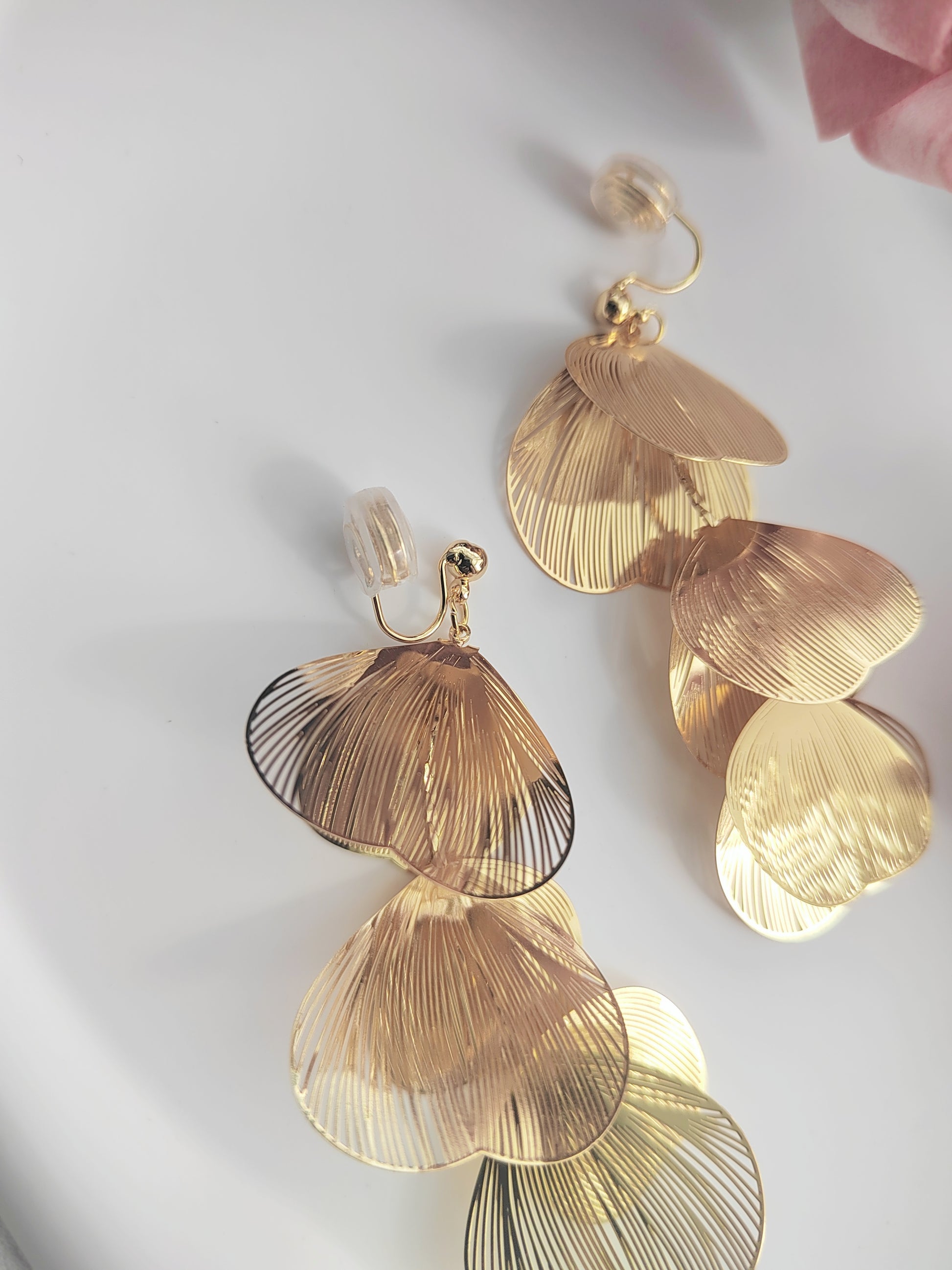 Gold Heart Leaf Tassel Clip-On Earrings – Non-Pierced Ear Clips