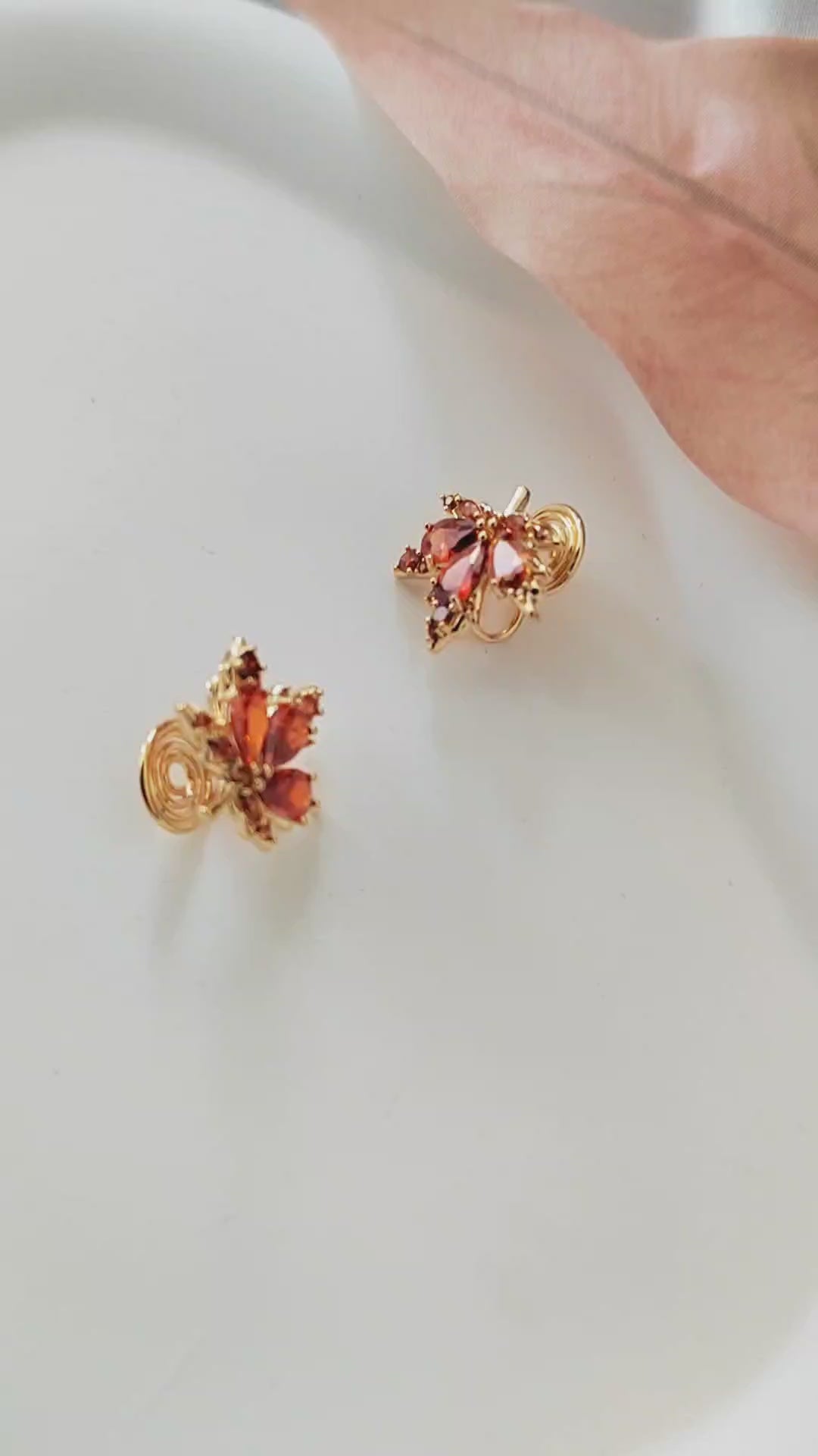Elegant maple leaf clip-on earrings designed for non-pierced ears. Lightweight, comfortable, and effortlessly refined.